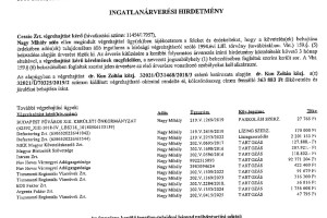 Ingatlanárverési Hirdetmény 1157 hrsz- Sarud